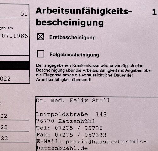 Das heißt, als gesetzlich Versicherte/r erhalten Sie ab sofort nur noch einen zweifachen Ausdruck Ihrer Krankmeldung: eine für den Arbeitgeber und eine für Sie selbst. Die Bescheinigung für Ihre Krankenkasse wird ab sofort von uns digital innerhalb eines Tages an Ihre Krankenkasse übermittelt.